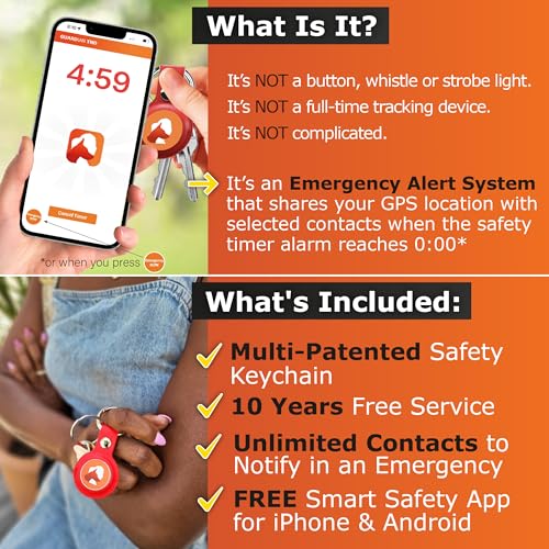 - When in need of help, the Guardian TND safety keychain alarm works with your phone to alert your chosen contacts of your last known location